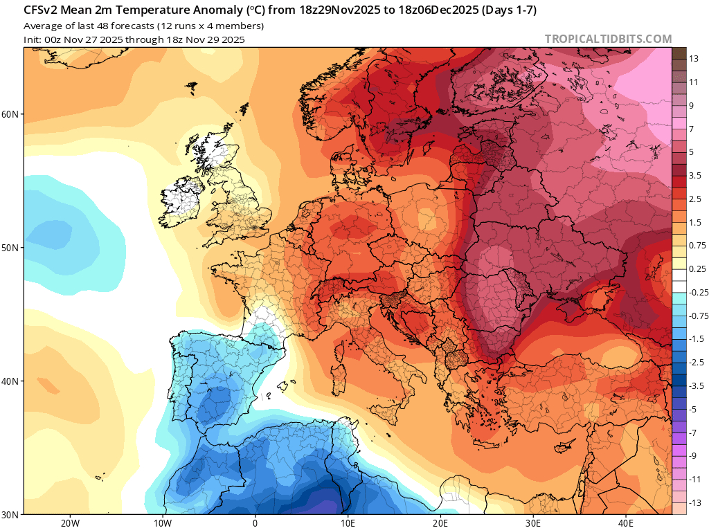 В первые дни декабря будет преобладать устойчивый характер погоды на фоне антициклона с температурой выше нормы.