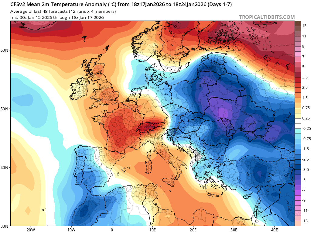 Под влиянием обширного антициклона, погодные условия в Украине прогнозируются морозными, особенно в северных и западных регионах, где в ночное время температура воздуха будет опускаться ниже -20 °С. Существенных осадков не предвидится за счёт высокого атмосферного давления, однако слабовыраженные атмосферные фронты станут причиной небольшого снега на Левобережье страны, а в конце недели также в западных и южных областях. На дорогах и тротуарах сохранится гололедица, а в условиях слабого ветра и малооблачного неба, местами будет наблюдаться туман и формирование изморози на проводах и ветках деревьев.