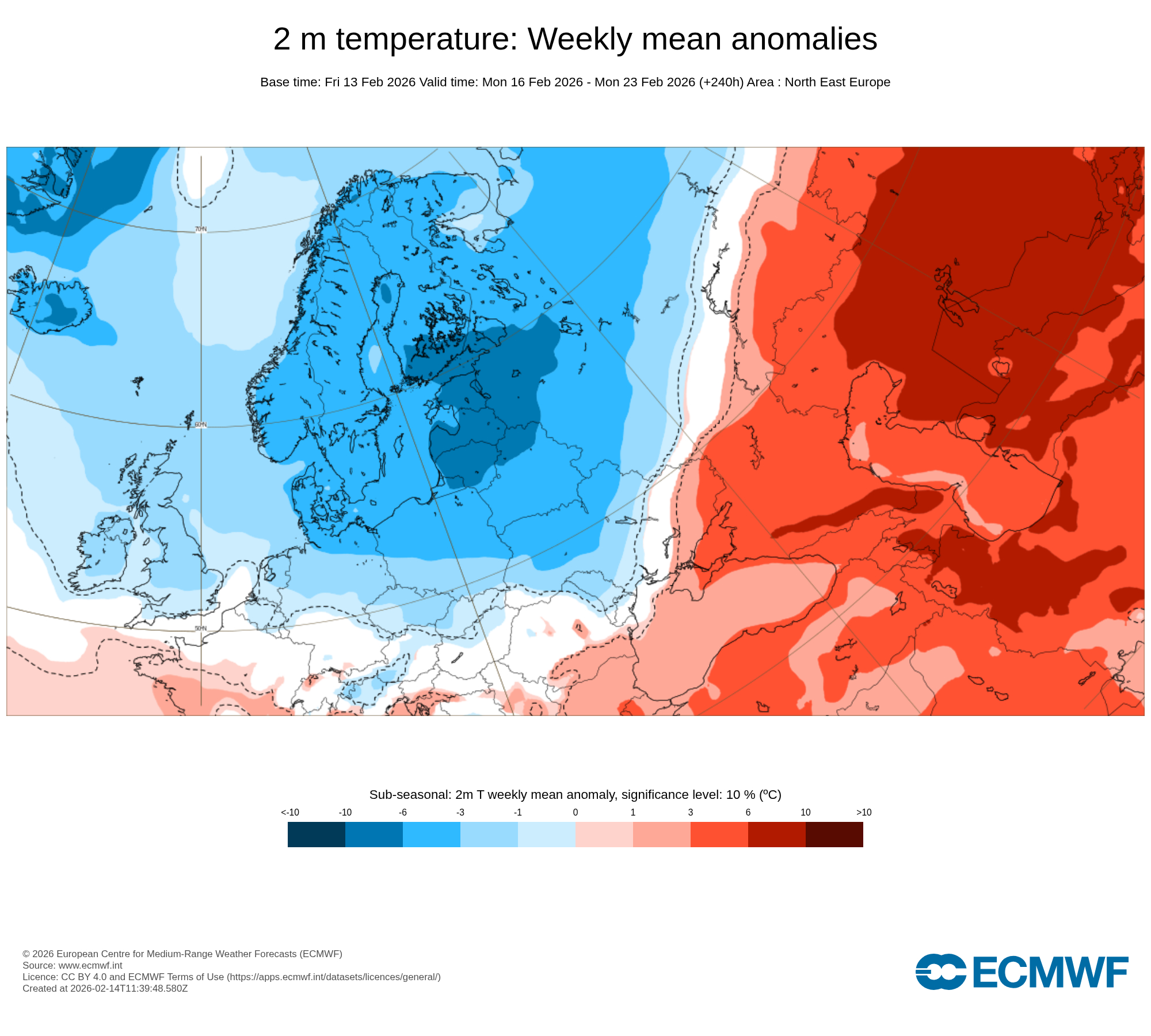 В понедельник, 16 февраля, ночью ожидаются сложные условия погоды в связи с прохождением активного южного циклона. В северных областях пройдёт сильный снег, метель, местами гололёд. В остальных регионах ожидаются умеренные осадки в виде дождя и снега. Днём небольшой снег пройдёт в северных и северо-западных регионах. Ветер будет преобладать южный с переходом на западный, 9 – 14 м/с, порывы (кроме западной части), 18 – 23 м/с. На дорогах северных и западных регионов гололедица, снежные заносы, снежный накат. Температура воздуха ночью на Левобережье составит -2…+5 °С, на Правобережье страны -5…-13 °С. Днём в северных и западных регионах -3…-8 °С, в других областях -2…+3 °С.