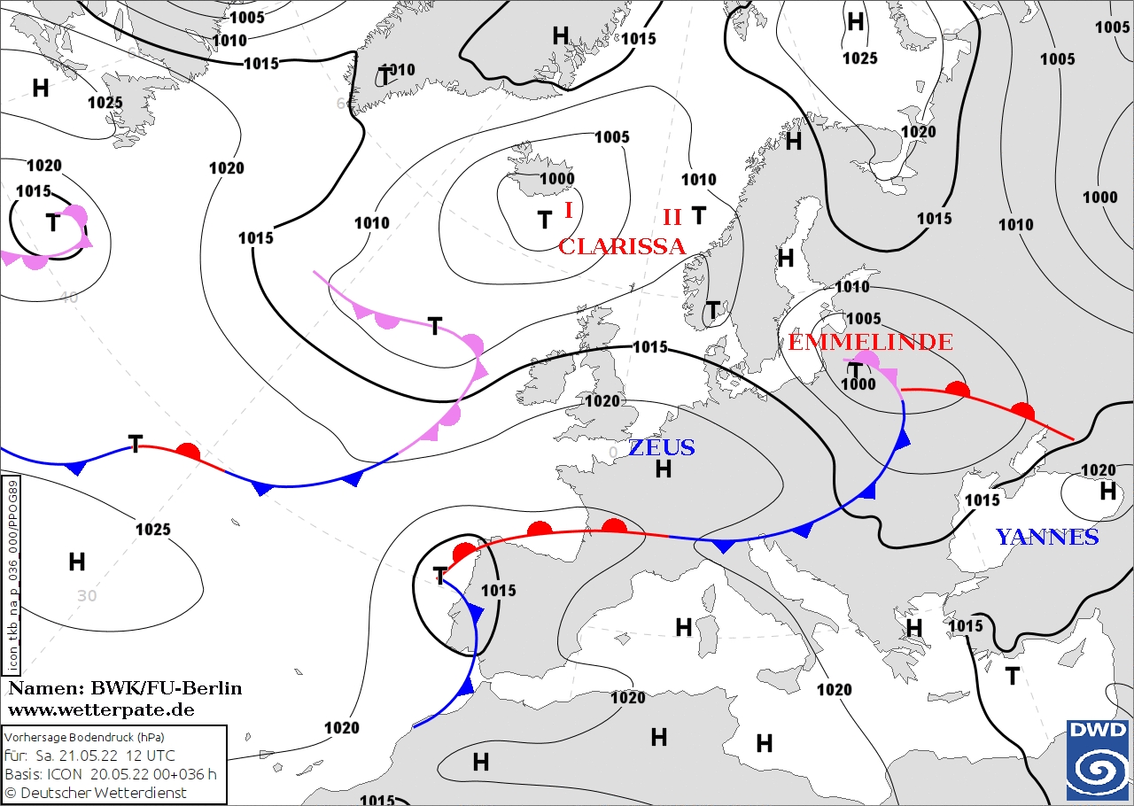 На вихідні погодні умови в Україні визначатимуться впливом активного циклону «Emmelinde», який отримає розвиток над країнами Балтії та Білорусі. Його атмосферні фронти прокотяться територією нашої країни впродовж суботи та неділі. У зв'язку з цим, на більшій частині території країни пройдуть дощі різної інтенсивності, місцями вони супроводжуватимуться грозами та шквалистим посиленням вітру. Крім того, швидка зміна повітряних мас у межах циклону сприятиме відчутним коливанням температури повітря та атмосферного тиску. Також посилиться вітер, особливо в неділю, внаслідок проходження тилової частини циклону. У багатьох областях пориви досягатимуть небезпечних значень у 15 – 20 м/с.