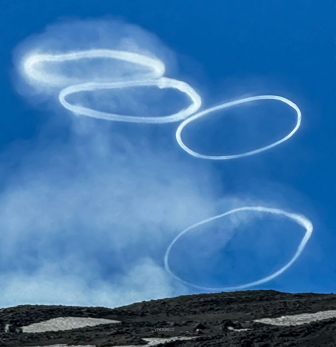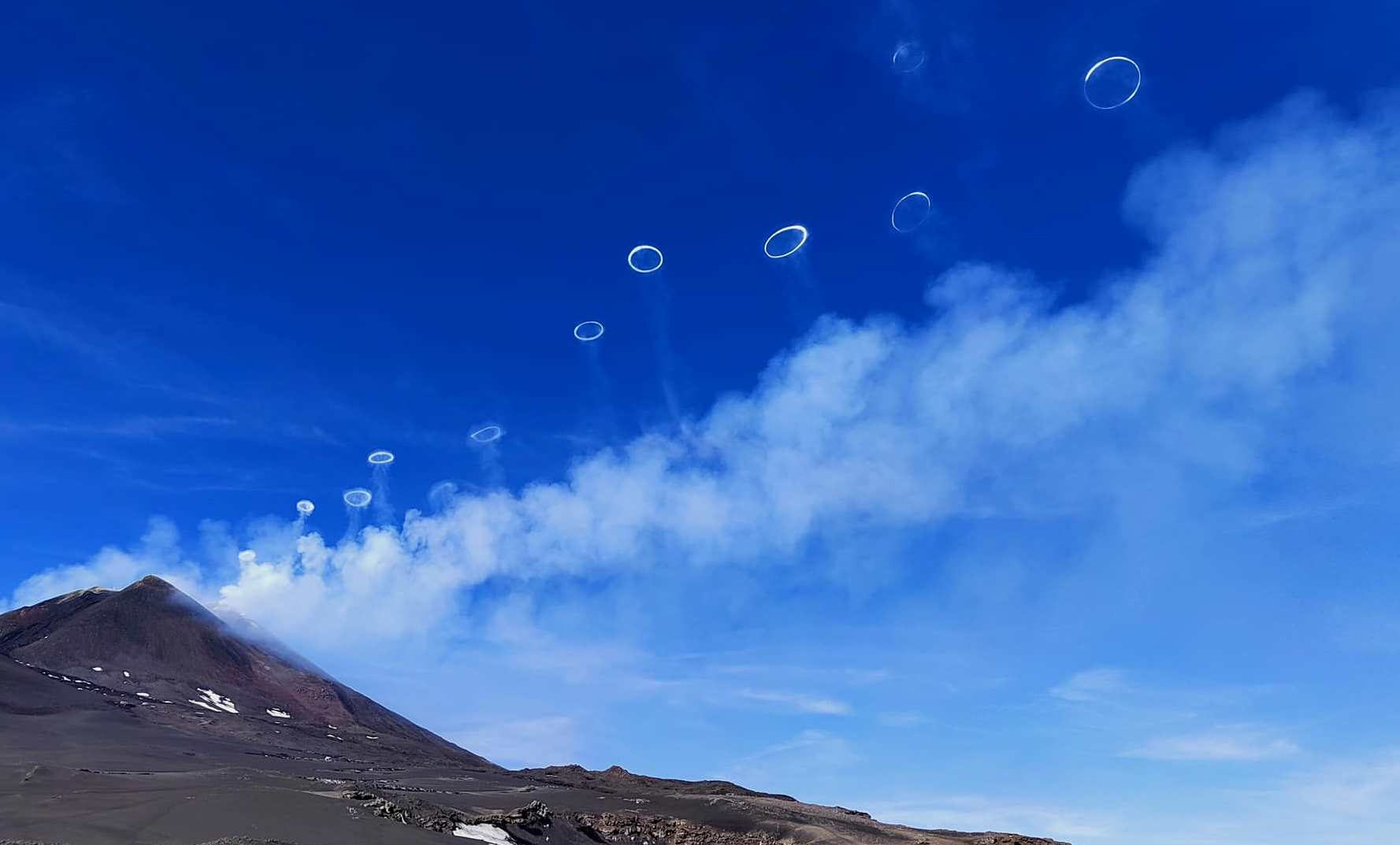 Приблизно з початку квітня 2024 року над вулканом Етна, який розташований на Сицилії (Італія), з регулярною частотою фіксуються дивовижні кільця, які складаються з пари та диму, що здіймаються в атмосферу. Це явище з кожним днем приваблює все більше туристів на околиці гори, щоб помилуватися і відобразити на фото і відео це диво природи.