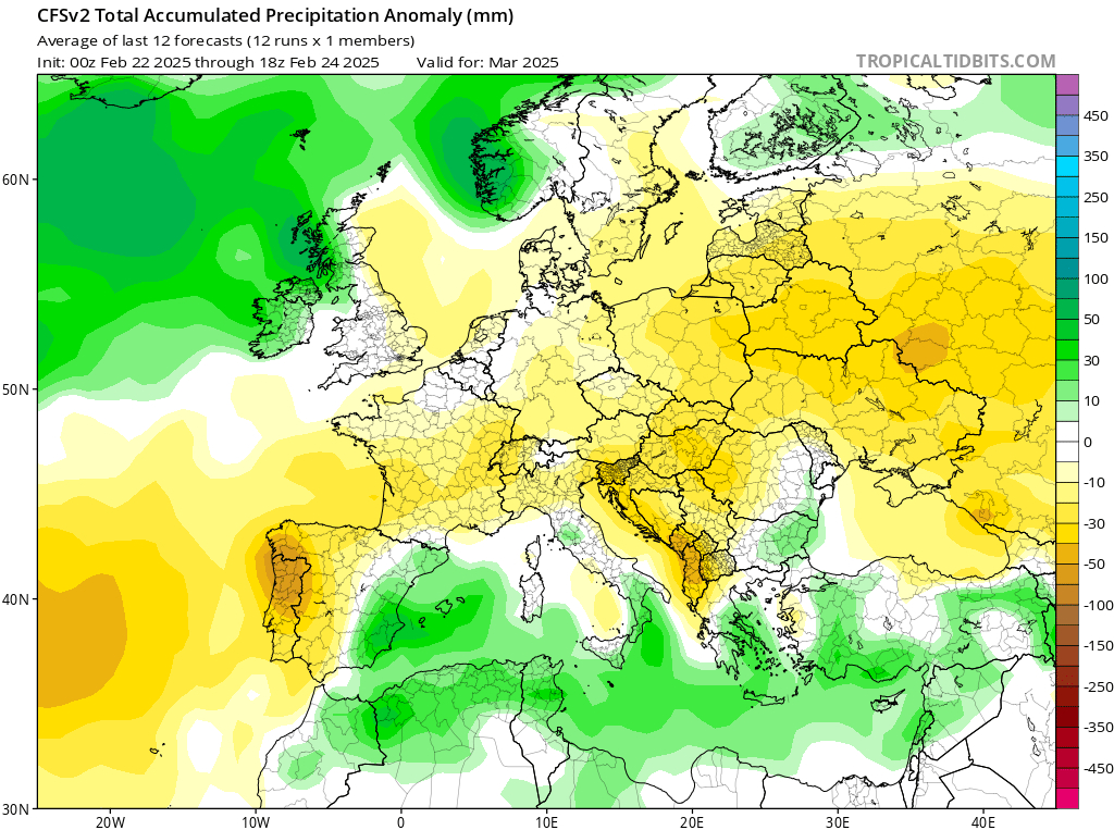 Березень як перший місяць весни, нерідко демонструє нам мінливий характер погоди, адже атмосферні процеси поступово змінюються від зимових на весняні. Таке протиборство відбивається у коливаннях температури повітря, посиленні вітру, а також у проходженні активних циклонів та атмосферних фронтів. Як свідчать прогностичні дані, на території Європи, особливо у її східній частині очікується переважання протягом березня області високого атмосферного тиску. Антициклони та гребені змінюватимуть один одного протягом усього місяця. Це є певною ознакою можливого дефіциту опадів у вказаній місцевості. Безумовно, протягом березня проходитимуть періодично атмосферні фронти та циклони, проте їхня активність прогнозується на досить низькому рівні, за винятком північно-західної Європи. Розподіл середньої температури повітря в Європі безпосередньо залежатиме від наявності снігового покриву (адже необхідні певні витрати тепла на його танення), а також від типу атмосферної циркуляції (меридіональна, або зональна). Особливо у першій половині березня прогнозується надходження повітряних мас з південного заходу на тлі виступу Азорського антициклону, що починає розвиватися. Але час від часу, з півночі та північного заходу Європи можливі короткочасні затоки холоду, які матимуть епізодичний характер. Тому в середньому за місяць температура повітря в Європі очікується на 1 – 3 °С вищою за норму, у північно-східній частині регіону – на 4 – 7 °С вище за середні багаторічні показники.